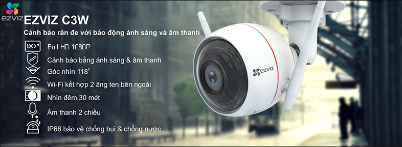 Camera Ezviz C3W là dòng camera thân cố định ngoài trời kết nối wifi tốt nhất hiện nay. Đây là mẫu camera ezviz tích hợp nhiều tính năng thông minh như: Chống trộm, phát hiện chuyển động, độ phân giải Full HD, có mic ghi âm xem qua điện thoại.