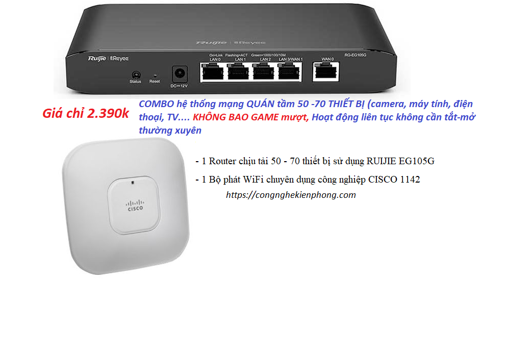 - 1 Router chịu tải 50 - 70 thiết bị sử dụng: RUIJIE EG105G