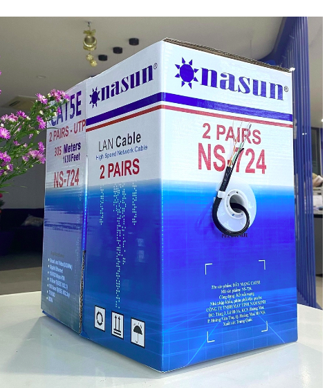 Dây mạng 4 lõi ĐỒNG VỎ PVC MỀM ĐẶC NGOÀI TRỜI Cat5e NASUN NS-724