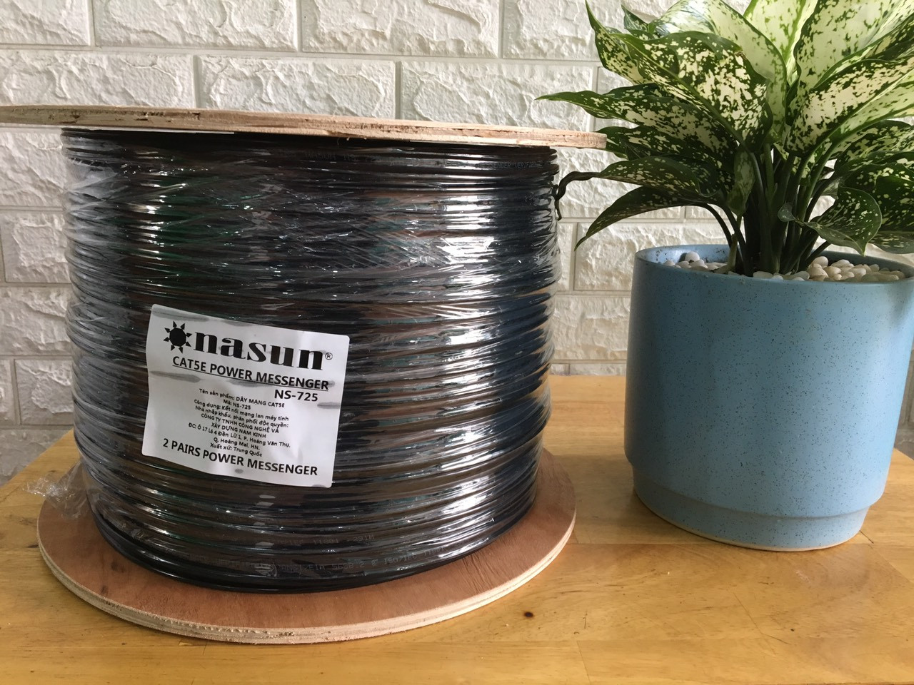 Dây mạng 4 LÕI + POWER Cat5e NASUN NS-725 NHÔM NGUYÊN CHẤT + Nhiều SỢI THÉP GIA CƯỜNG bện chặt, (Hàng chuẩn 305m/cuộn GỖ) - POWER 2C*6/0.38mmCCA - Đường kính lõi 0.53mm CCA.