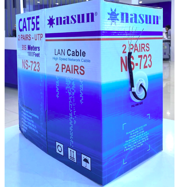Dây mạng 4 lõi VỎ PVC MỀM ĐẶC Cat5e NASUN NS-723 NHÔM NGUYÊN CHẤT + Nhiều SỢI THÉP GIA CƯỜNG bện chặt