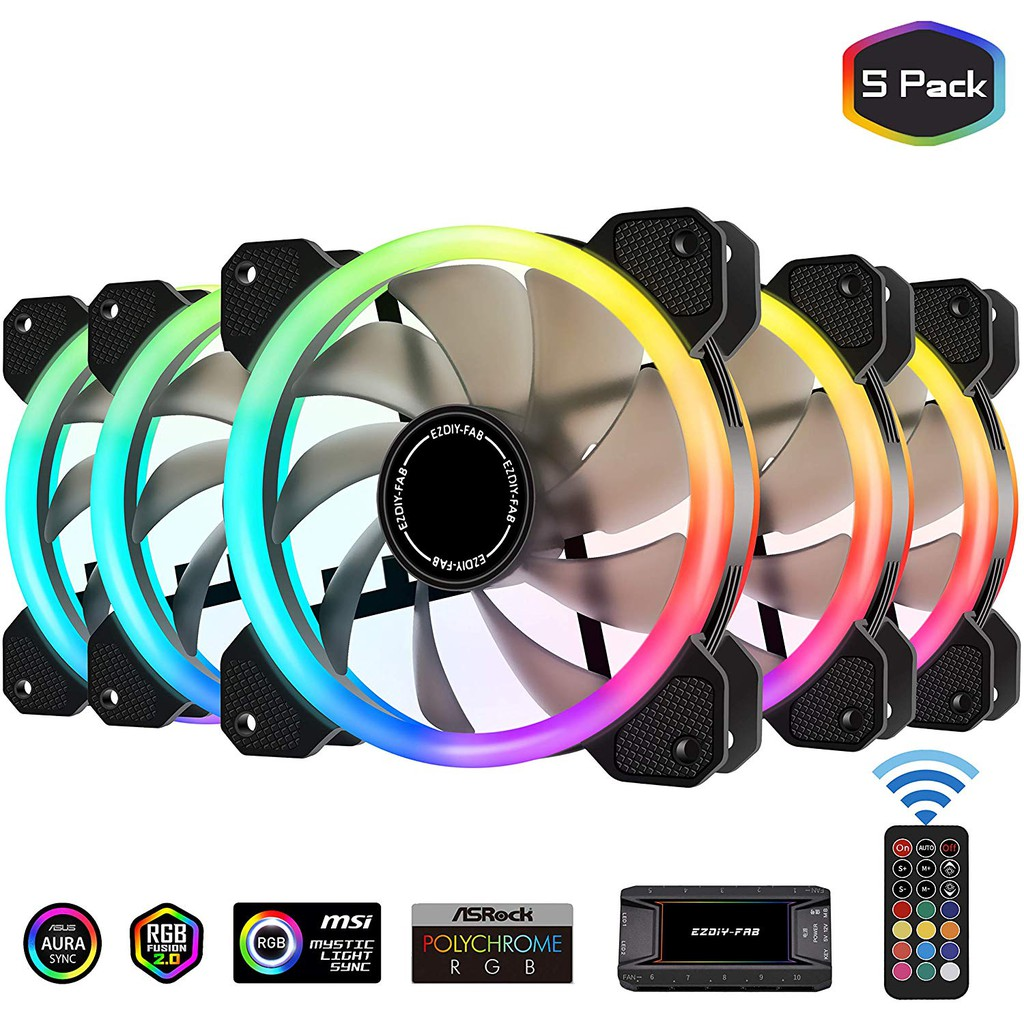 Fan 12 cm, 5 LED RBG + Hub + điều khiển từ xa